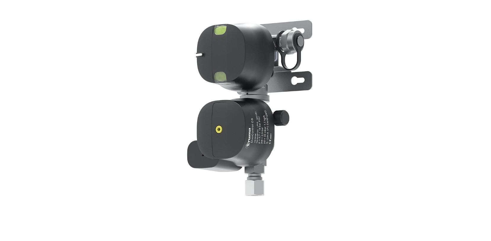 Ρυθμιστής υγραερίου με αισθητήρα σύγκρουσης και σύστημα μεταγωγής για δύο φιάλες αερίου, κατάλληλος για τοποθέτηση σε τοίχο.